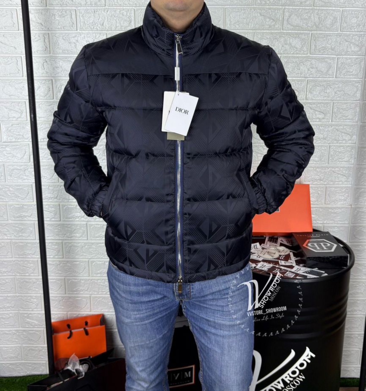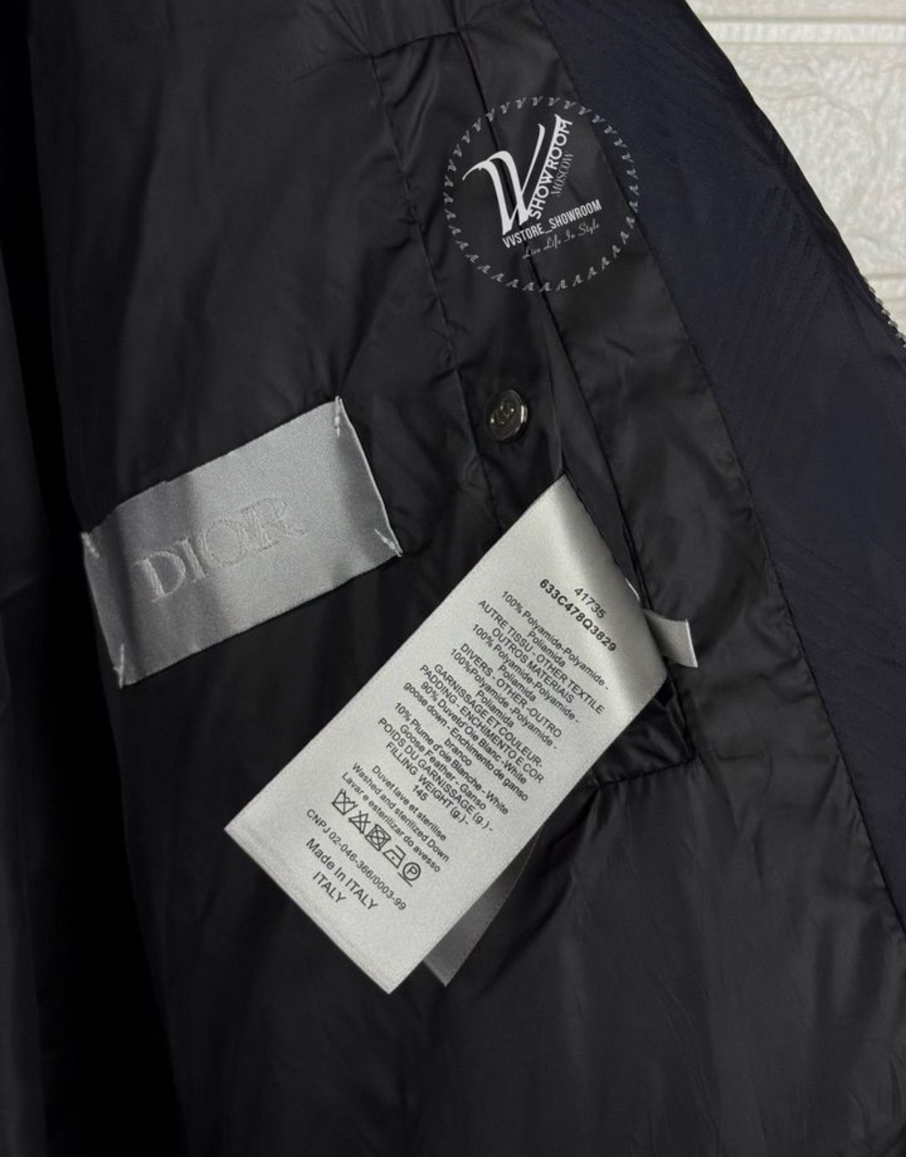 Премиальный пуховик CD Dior – Ваш стильный спутник зимой! Темно-синие тона подчеркнут изысканность образа, а двусторонняя молния добавляет практичности. Мягкая нашивка бренда на рукаве подчеркивает эксклюзивность модели. Наполнитель из пуха и пера гарантирует тепло даже в самые холодные дни, а водоотталкивающий материал (100% полиамид) защитит от непогоды. Воротник-стойка подарит дополнительное удобство, а удобные карманы станут хранилищем для мелочей. Идеален как для прогулок по городу, так и для особых событий!
